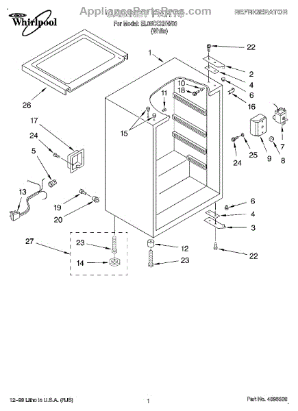 This factory screw secures appliance components to their mounting points. Replace missing, worn, or stripped hardware to restore a tight fit, proper alignment, and quieter operation across the affected assembly.