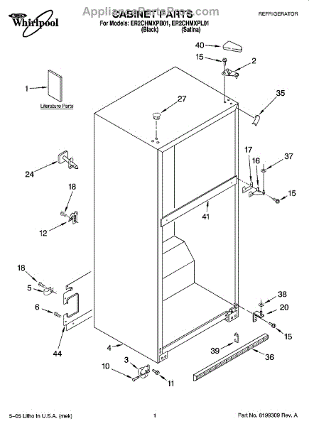 Parts for Whirlpool ER2CHMXPL01: 01 - Cabinet Parts