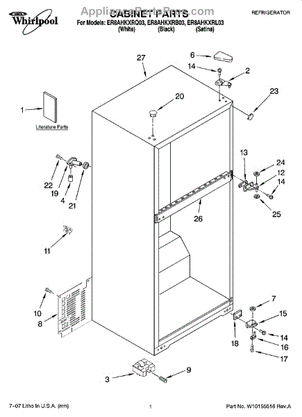 Parts for Whirlpool ER8AHKXRL03: 01 - Cabinet Parts