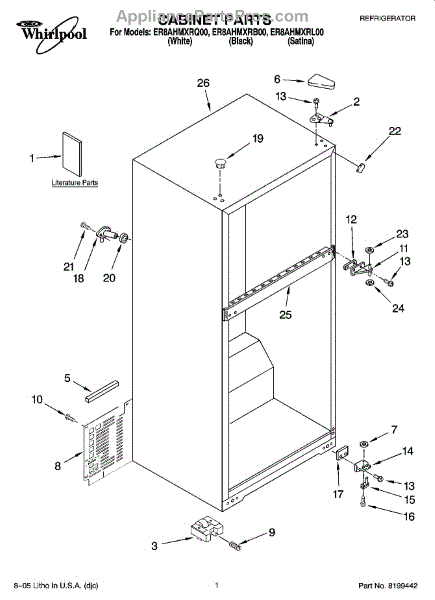 Repair manual for refrigerators and freezers made by Whirlpool. Covered brands include Whirlpool, Sears, Kenmore, Kitchen Aid, Roper, and Estate. Easy to follow photographs and step-by-step repair procedures.