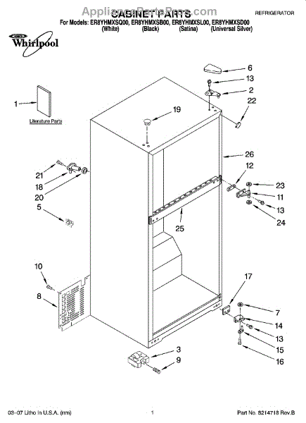 Parts for Whirlpool ER8YHMXSD00: 01 - Cabinet Parts
