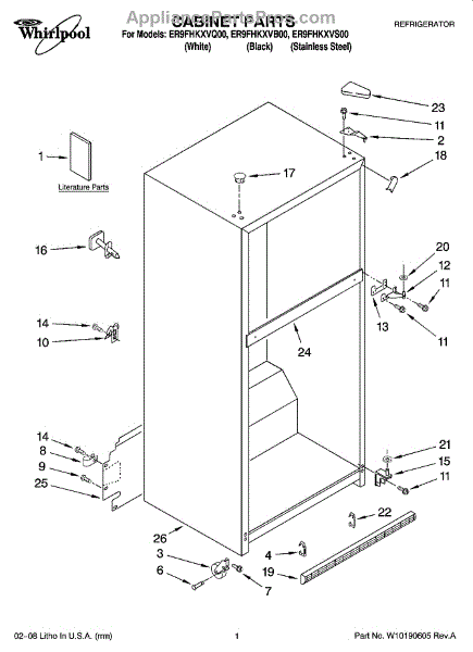 Repair manual for refrigerators and freezers made by Whirlpool. Covered brands include Whirlpool, Sears, Kenmore, Kitchen Aid, Roper, and Estate. Easy to follow photographs and step-by-step repair procedures.