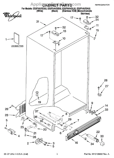 Parts for Whirlpool ES2FHAXSQ02: 01 - Cabinet Parts