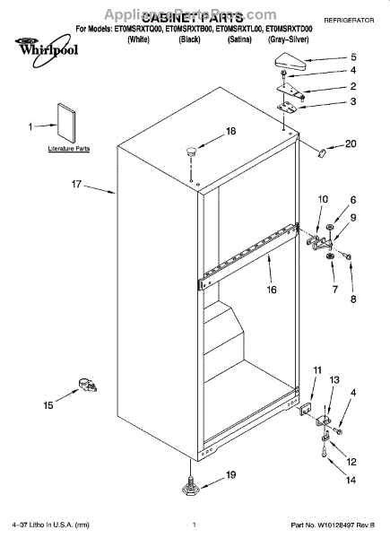 Repair manual for refrigerators and freezers made by Whirlpool. Covered brands include Whirlpool, Sears, Kenmore, Kitchen Aid, Roper, and Estate. Easy to follow photographs and step-by-step repair procedures.