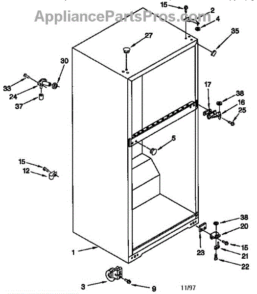 This is the center hinge for the refrigerator doors. It supports and aligns the doors at the midpoint so they open smoothly and seal properly, helping maintain temperatures and reliable day-to-day operation.