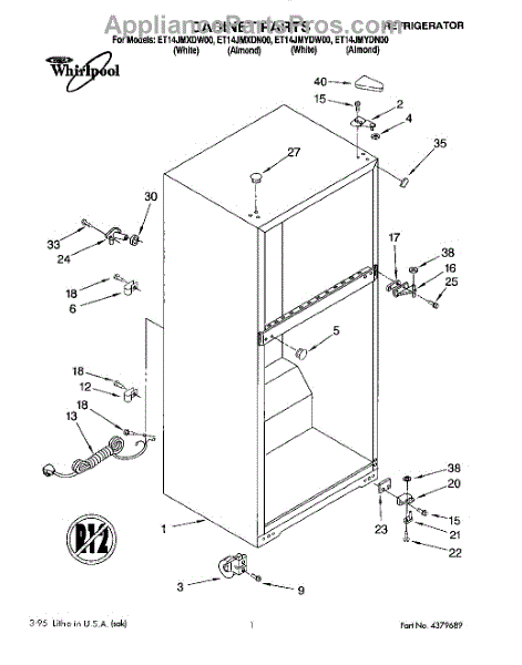 Parts for Whirlpool ET14JMXDW00: 01 - Cabinet Parts