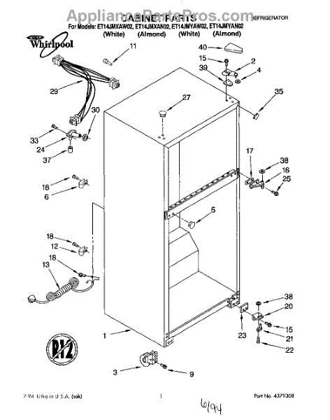 Parts for Whirlpool ET14JMYAW02: 01 - Cabinet Parts