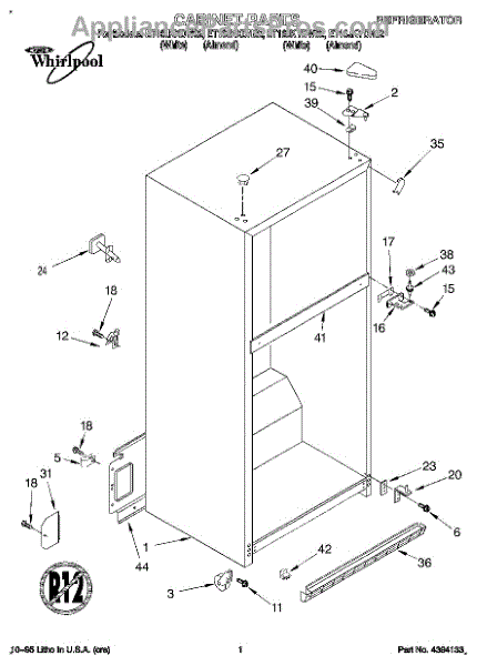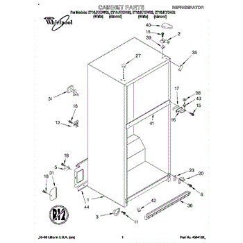 Parts for Whirlpool ET16JKXDW02: 01 - Cabinet Parts