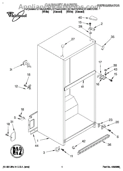 Parts for Whirlpool ET16JKYDW01: 01 - Cabinet Parts