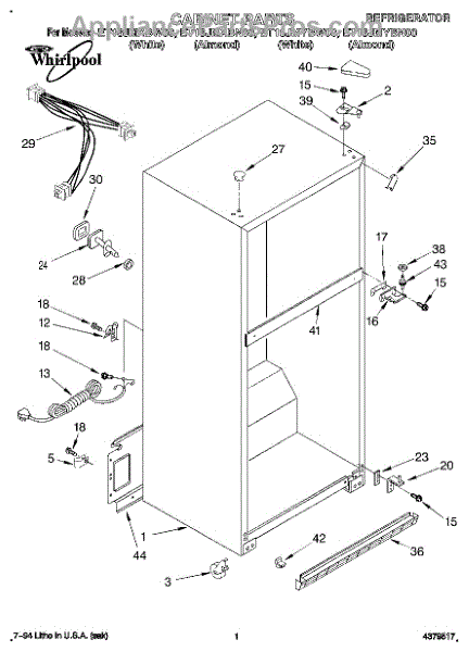 The Center Door Hinge is an OEM replacement part for Whirlpool refrigerators. As one of several hinges supporting each refrigerator door panel, it works to guide opening and closing movements. Causes of a faulty center hinge tend to be wear from years of continuous operation with near-daily door cycles. Complete failure could also occur in the event of physical damage sustained during a repair or installation issue. Symptoms include: