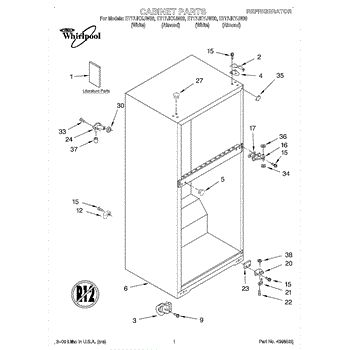 Parts for Whirlpool ET17JKXJW00: 01 - Cabinet, Literature Parts