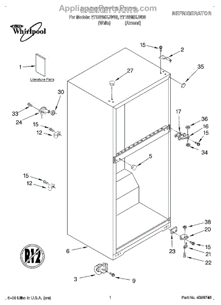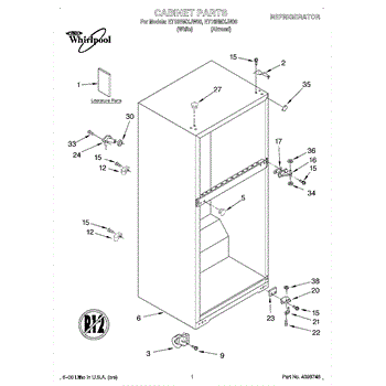 Parts for Whirlpool ET18BMXJN00: 01 - Cabinet, Literature Parts