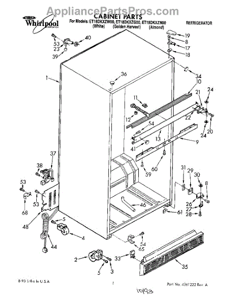 Parts for Whirlpool ET18DKXZW00: 01 - Cabinet Parts