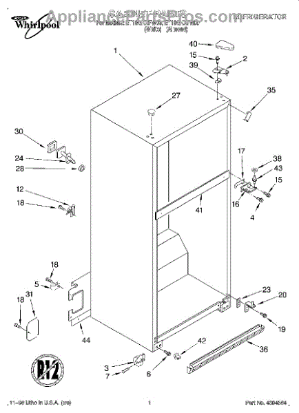 Parts for Whirlpool ET18GKXFW00: 01 - Cabinet Parts