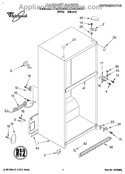 Parts for Whirlpool ET18HTXDN00: 01 - Cabinet Parts