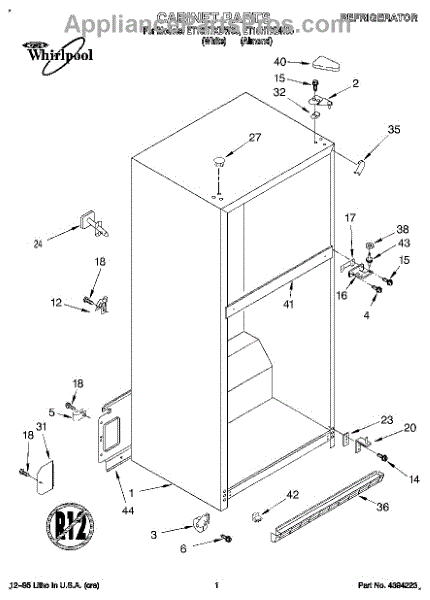 Parts for Whirlpool ET18HTXDW05: 01 - Cabinet Parts