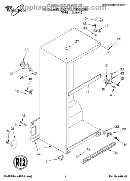 Parts for Whirlpool ET18JKXDW05: 01 - Cabinet Parts