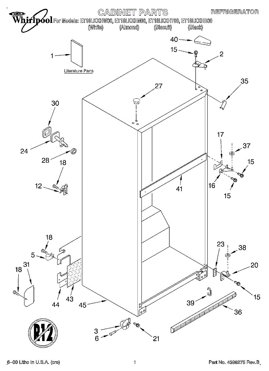 Repair manual for refrigerators and freezers made by Whirlpool. Covered brands include Whirlpool, Sears, Kenmore, Kitchen Aid, Roper, and Estate. Easy to follow photographs and step-by-step repair procedures.