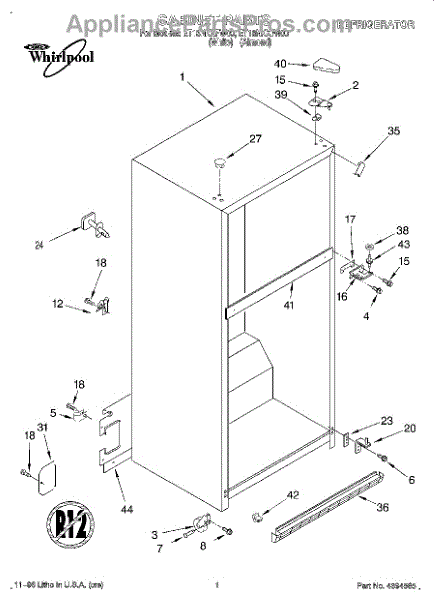 Parts for Whirlpool ET18NKXFW00: 01 - Cabinet Parts