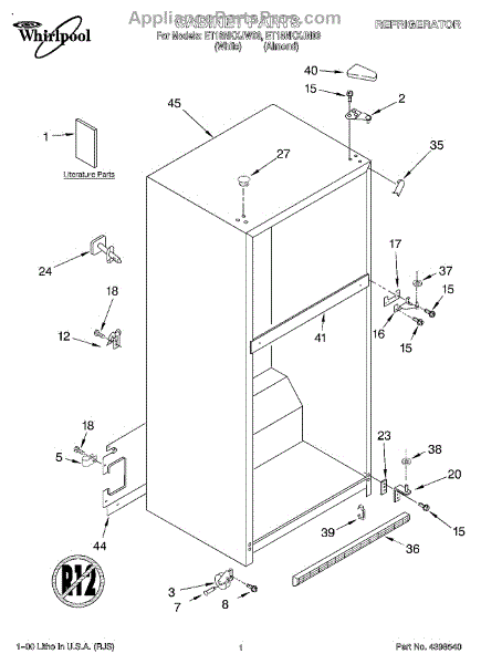 Repair manual for refrigerators and freezers made by Whirlpool. Covered brands include Whirlpool, Sears, Kenmore, Kitchen Aid, Roper, and Estate. Easy to follow photographs and step-by-step repair procedures.