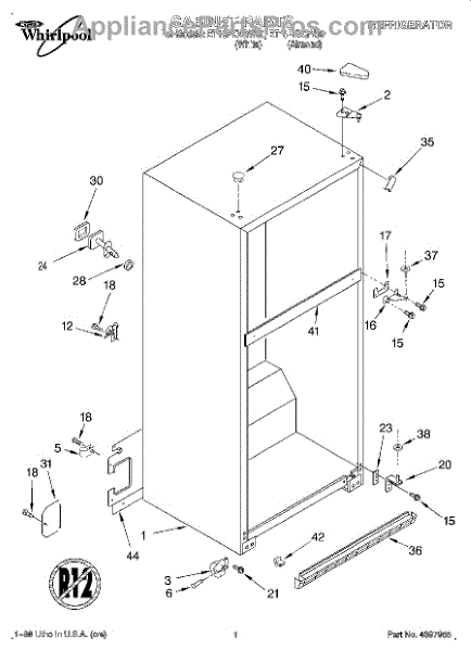 The Hinge Washer is an OEM replacement part for Whirlpool refrigerators. This small washer plays a supports the refrigerator door hinge assembly. Center hinge plastic washer. Causes of a bad hinge washer are generally normal wear and tear from extensive use. As the washer absorbs pressure each time the door is opened or closed, it can gradually deteriorate or crack. Physical damage is also possible if the door is accidentally struck or slammed. Symptoms of a worn or damaged hinge washer include: