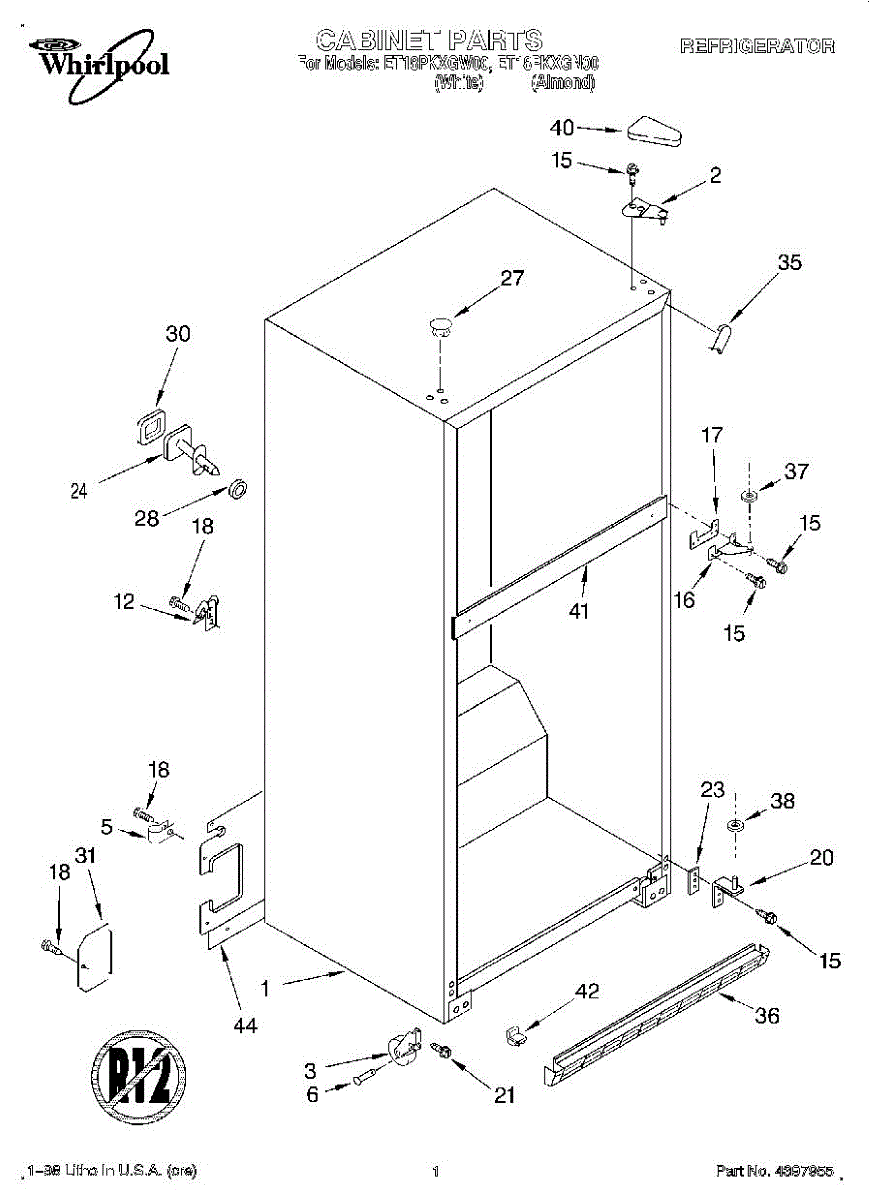 The Hinge Washer is an OEM replacement part for Whirlpool refrigerators. This small washer plays a supports the refrigerator door hinge assembly. Center hinge plastic washer. Causes of a bad hinge washer are generally normal wear and tear from extensive use. As the washer absorbs pressure each time the door is opened or closed, it can gradually deteriorate or crack. Physical damage is also possible if the door is accidentally struck or slammed. Symptoms of a worn or damaged hinge washer include: