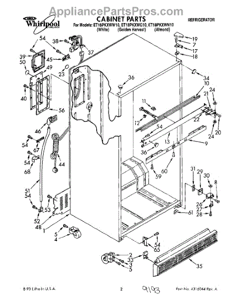 Parts for Whirlpool ET18PKXWG10: 01 - Cabinet Parts
