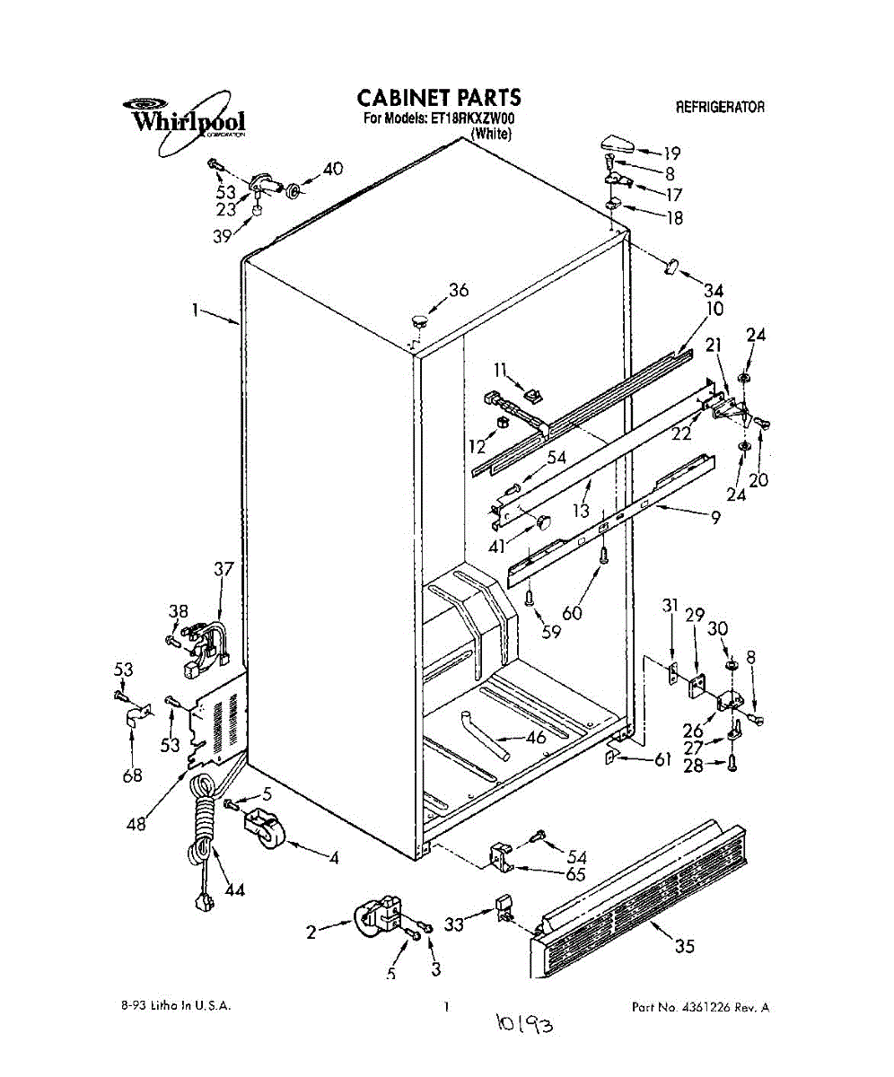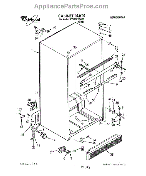 The Hinge Washer is an OEM replacement part for Whirlpool refrigerators. This small washer plays a supports the refrigerator door hinge assembly. Center hinge plastic washer. Causes of a bad hinge washer are generally normal wear and tear from extensive use. As the washer absorbs pressure each time the door is opened or closed, it can gradually deteriorate or crack. Physical damage is also possible if the door is accidentally struck or slammed. Symptoms of a worn or damaged hinge washer include: