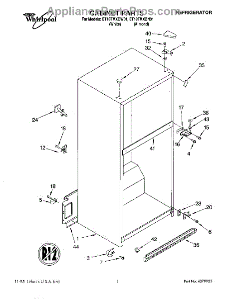 Parts for Whirlpool ET18TMXDW01: 01 - Cabinet Parts