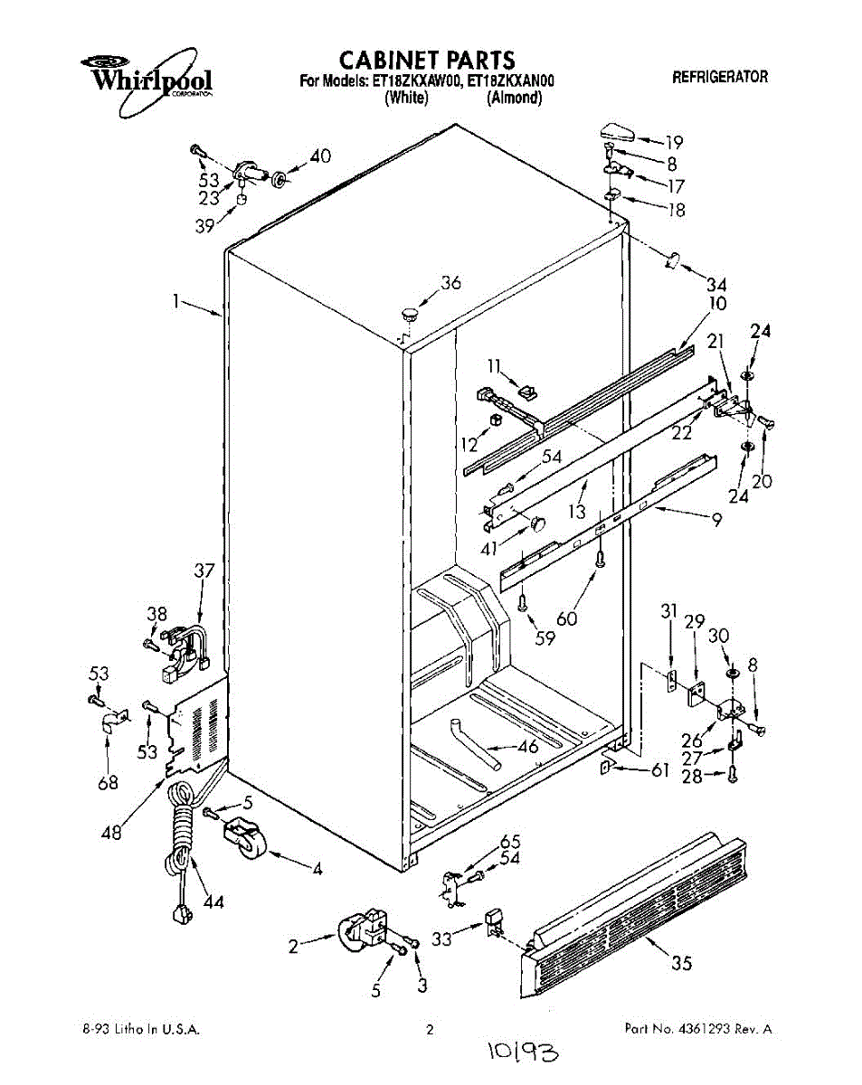 The Hinge Washer is an OEM replacement part for Whirlpool refrigerators. This small washer plays a supports the refrigerator door hinge assembly. Center hinge plastic washer. Causes of a bad hinge washer are generally normal wear and tear from extensive use. As the washer absorbs pressure each time the door is opened or closed, it can gradually deteriorate or crack. Physical damage is also possible if the door is accidentally struck or slammed. Symptoms of a worn or damaged hinge washer include:
