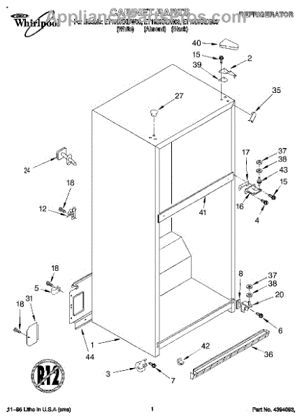 The Hinge Washer is an OEM replacement part for Whirlpool refrigerators. This small washer plays a supports the refrigerator door hinge assembly. Center hinge plastic washer. Causes of a bad hinge washer are generally normal wear and tear from extensive use. As the washer absorbs pressure each time the door is opened or closed, it can gradually deteriorate or crack. Physical damage is also possible if the door is accidentally struck or slammed. Symptoms of a worn or damaged hinge washer include: