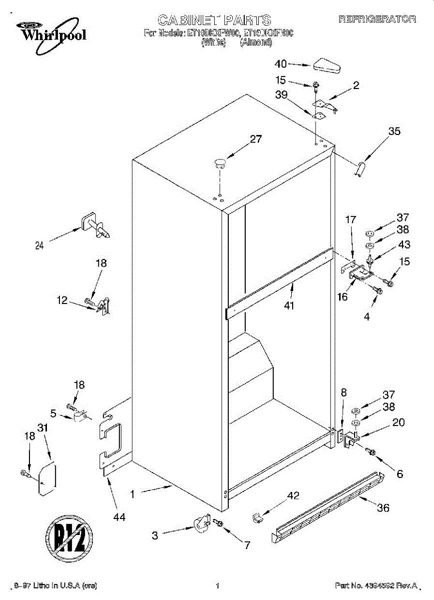The Hinge Washer is an OEM replacement part for Whirlpool refrigerators. This small washer plays a supports the refrigerator door hinge assembly. Center hinge plastic washer. Causes of a bad hinge washer are generally normal wear and tear from extensive use. As the washer absorbs pressure each time the door is opened or closed, it can gradually deteriorate or crack. Physical damage is also possible if the door is accidentally struck or slammed. Symptoms of a worn or damaged hinge washer include: