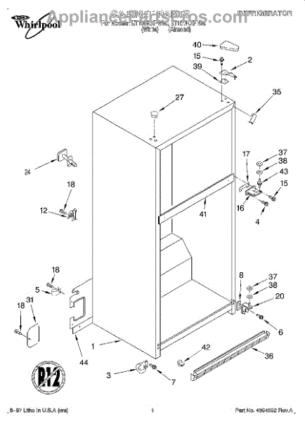 The Hinge Washer is an OEM replacement part for Whirlpool refrigerators. This small washer plays a supports the refrigerator door hinge assembly. Center hinge plastic washer. Causes of a bad hinge washer are generally normal wear and tear from extensive use. As the washer absorbs pressure each time the door is opened or closed, it can gradually deteriorate or crack. Physical damage is also possible if the door is accidentally struck or slammed. Symptoms of a worn or damaged hinge washer include: