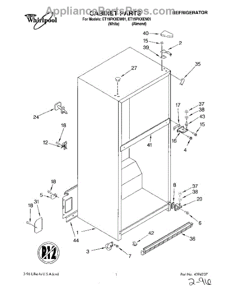 The Hinge Washer is an OEM replacement part for Whirlpool refrigerators. This small washer plays a supports the refrigerator door hinge assembly. Center hinge plastic washer. Causes of a bad hinge washer are generally normal wear and tear from extensive use. As the washer absorbs pressure each time the door is opened or closed, it can gradually deteriorate or crack. Physical damage is also possible if the door is accidentally struck or slammed. Symptoms of a worn or damaged hinge washer include: