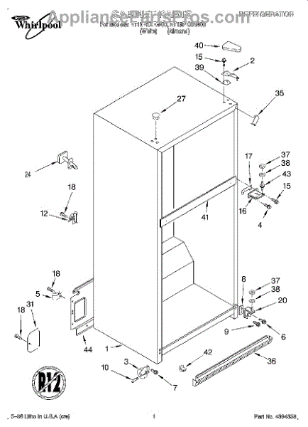 The Hinge Washer is an OEM replacement part for Whirlpool refrigerators. This small washer plays a supports the refrigerator door hinge assembly. Center hinge plastic washer. Causes of a bad hinge washer are generally normal wear and tear from extensive use. As the washer absorbs pressure each time the door is opened or closed, it can gradually deteriorate or crack. Physical damage is also possible if the door is accidentally struck or slammed. Symptoms of a worn or damaged hinge washer include: