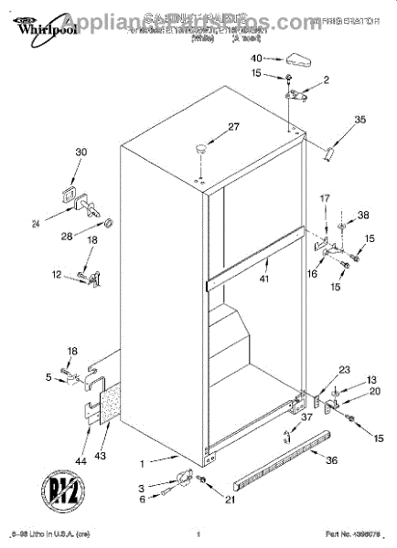 The Hinge Washer is an OEM replacement part for Whirlpool refrigerators. This small washer plays a supports the refrigerator door hinge assembly. Center hinge plastic washer. Causes of a bad hinge washer are generally normal wear and tear from extensive use. As the washer absorbs pressure each time the door is opened or closed, it can gradually deteriorate or crack. Physical damage is also possible if the door is accidentally struck or slammed. Symptoms of a worn or damaged hinge washer include: