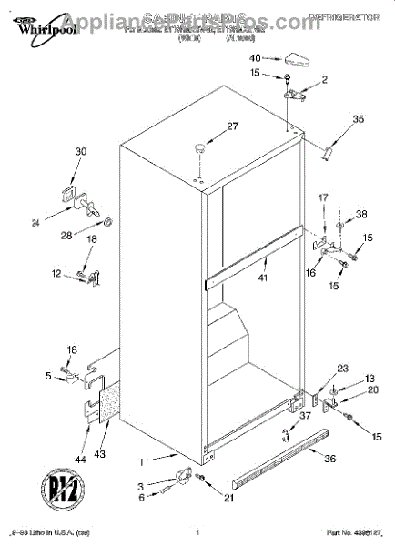 The Hinge Washer is an OEM replacement part for Whirlpool refrigerators. This small washer plays a supports the refrigerator door hinge assembly. Center hinge plastic washer. Causes of a bad hinge washer are generally normal wear and tear from extensive use. As the washer absorbs pressure each time the door is opened or closed, it can gradually deteriorate or crack. Physical damage is also possible if the door is accidentally struck or slammed. Symptoms of a worn or damaged hinge washer include: