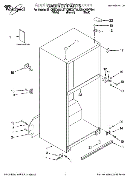 Repair manual for refrigerators and freezers made by Whirlpool. Covered brands include Whirlpool, Sears, Kenmore, Kitchen Aid, Roper, and Estate. Easy to follow photographs and step-by-step repair procedures.