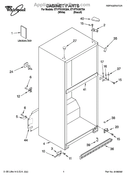 Parts for Whirlpool ET1FTKXKQ04: 01 - Cabinet Parts