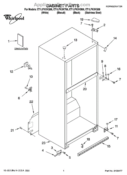 Repair manual for refrigerators and freezers made by Whirlpool. Covered brands include Whirlpool, Sears, Kenmore, Kitchen Aid, Roper, and Estate. Easy to follow photographs and step-by-step repair procedures.