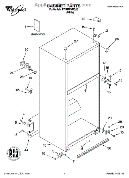 Repair manual for refrigerators and freezers made by Whirlpool. Covered brands include Whirlpool, Sears, Kenmore, Kitchen Aid, Roper, and Estate. Easy to follow photographs and step-by-step repair procedures.