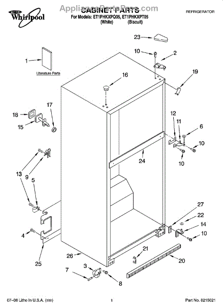 Repair manual for refrigerators and freezers made by Whirlpool. Covered brands include Whirlpool, Sears, Kenmore, Kitchen Aid, Roper, and Estate. Easy to follow photographs and step-by-step repair procedures.
