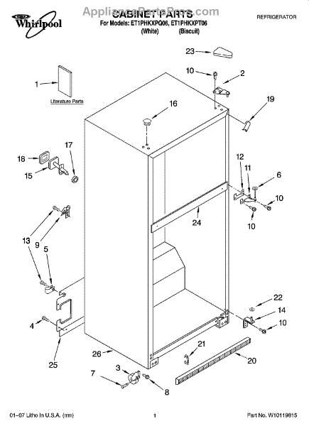 Parts for Whirlpool ET1PHKXPT06: 01 - Cabinet Parts