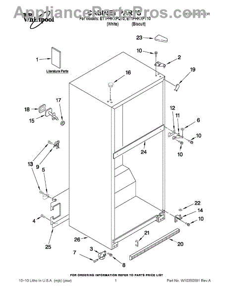 Repair manual for refrigerators and freezers made by Whirlpool. Covered brands include Whirlpool, Sears, Kenmore, Kitchen Aid, Roper, and Estate. Easy to follow photographs and step-by-step repair procedures.