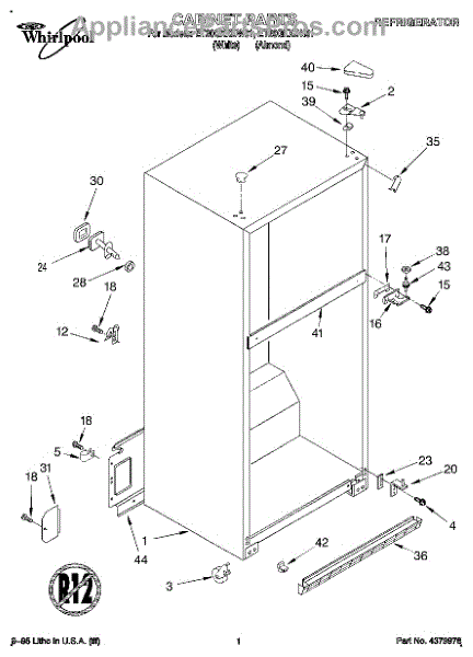 Parts for Whirlpool ET20GKXDN01: 01 - Cabinet Parts