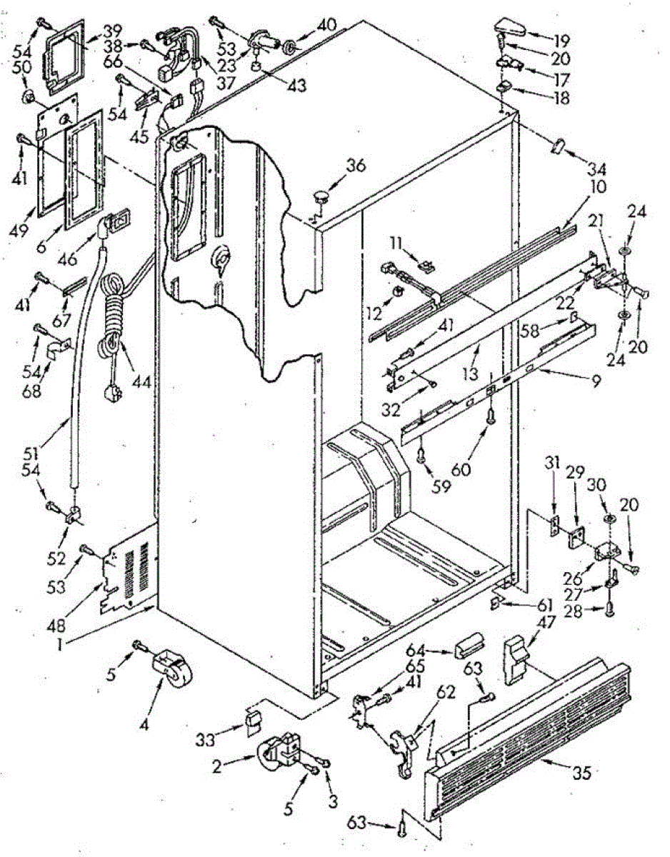 This cabinet roller assembly supports the refrigerator at the base and lets you roll the unit forward for cleaning or service. Replace a cracked or seized roller to restore smooth movement and a stable, level stance. What it does: