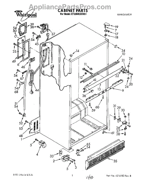 Parts for Whirlpool ET20NKXXF01: 01 - Cabinet Parts