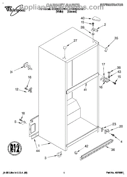 Parts for Whirlpool ET20NMXDW01: 01 - Cabinet Parts