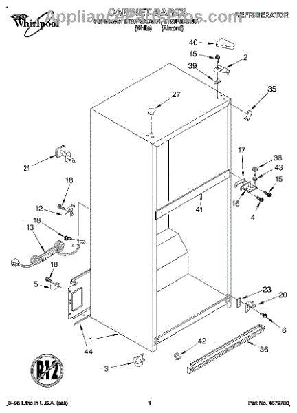 The Center Door Hinge is an OEM replacement part for Whirlpool refrigerators. As one of several hinges supporting each refrigerator door panel, it works to guide opening and closing movements. Causes of a faulty center hinge tend to be wear from years of continuous operation with near-daily door cycles. Complete failure could also occur in the event of physical damage sustained during a repair or installation issue. Symptoms include: