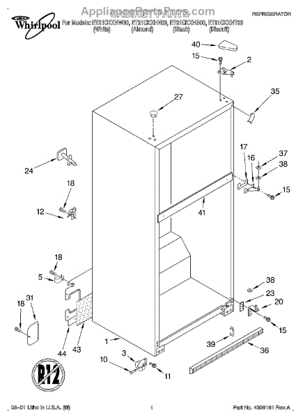 The Hinge Washer is an OEM replacement part for Whirlpool refrigerators. This small washer plays a supports the refrigerator door hinge assembly. Center hinge plastic washer. Causes of a bad hinge washer are generally normal wear and tear from extensive use. As the washer absorbs pressure each time the door is opened or closed, it can gradually deteriorate or crack. Physical damage is also possible if the door is accidentally struck or slammed. Symptoms of a worn or damaged hinge washer include: